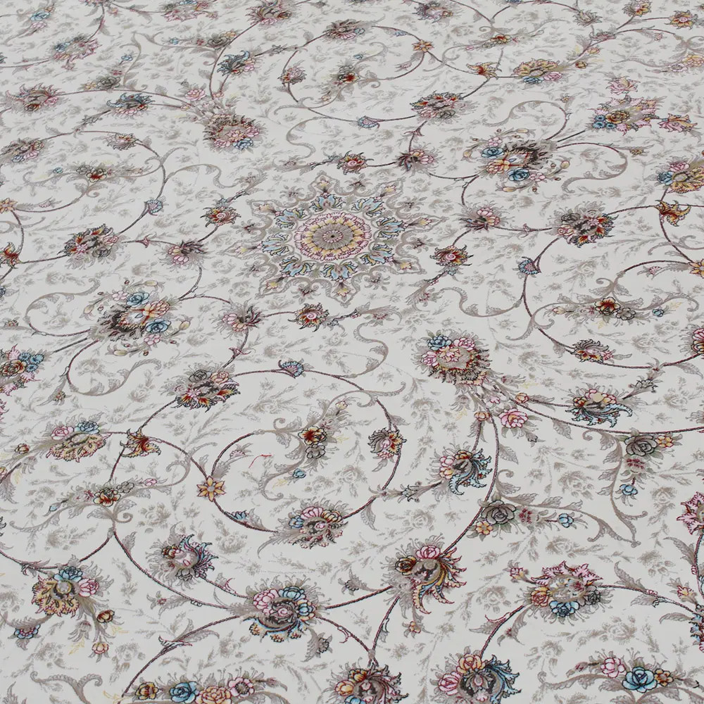 A Gépi perzsa szőnyeg Isfahan bézs színben tökéletes választás, ha luxus akril szőnyeget keres a nappaliba. Ez a szőnyeg elegáns megjelenést biztosít, miközben megőrzi a hagyományos gépi perzsa szőnyegek minden előnyét. Ez a szőnyeg különleges értékét a 1.490.000 gépi csomó adja négyzetméterenként, amely páratlan részletességet biztosít. 3,5 kg/nm súlyával erőt és tartósságot képvisel.
