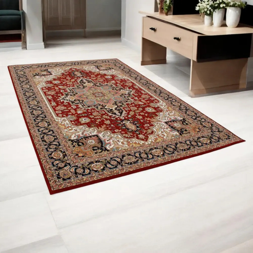 Ez a Gépi perzsa szőnyeg Heriz bordó színeivel és prémium minőségű akril anyagával tökéletes választás, ha elegáns és stílusos kiegészítőt keres otthonába. A szőnyeg különleges mintázata és minősége garantálja, hogy otthona központi elemévé válik. Ne habozzon, válassza ezt a kiváló minőségű akril szőnyeget, amely hosszú évekig szolgálja majd kényelmét és eleganciáját.