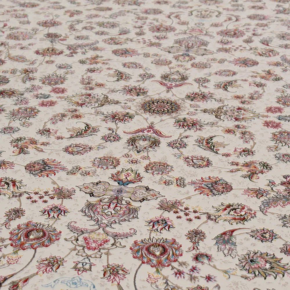 Fedezze fel a Gépi perzsa szőnyeg Isfahan bézs színben, amely a klasszikus elegancia és a modern technológia tökéletes ötvözete. Ez a prémium akril szőnyeg Iránból nemcsak kiváló minőségű anyagokból készült, hanem a hagyományos iráni mintákat is megőrizte, így otthonának különleges atmoszférát biztosít. Ez a szőnyeg a mesterséges tökéletesség példája: 1.490.000 gépi csomó négyzetméterenként biztosítja a részletgazdag mintát, míg 3,5 kg/nm súlya a tartósság záloga.