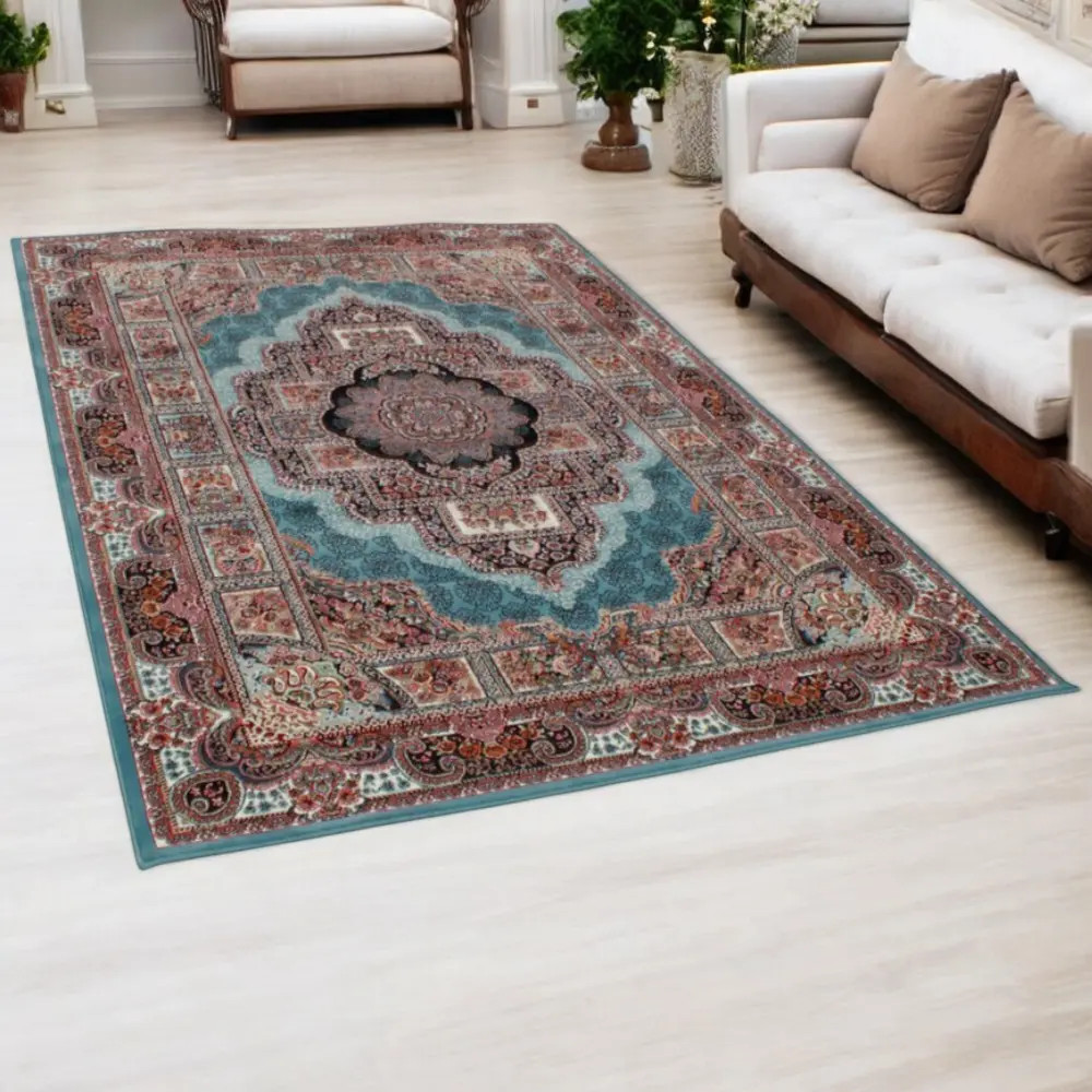 Ez a Gépi perzsa szőnyeg türkiz Tabriz nemcsak a nappali dísze lehet, hanem bármely helyiség elegáns kiegészítője is. A luxus nappali szőnyeg akrilból készült, így hosszú távon is szolgálja otthonát. A szőnyeg gazdag mintázata és prémium anyaghasználata biztosítja, hogy otthona stílusos és kényelmes legyen. Ha eleganciát és minőséget keres, ez a szőnyeg tökéletes választás. Ne habozzon, tegye otthonát még vonzóbbá ezzel a különleges gépi perzsa szőnyeggel!