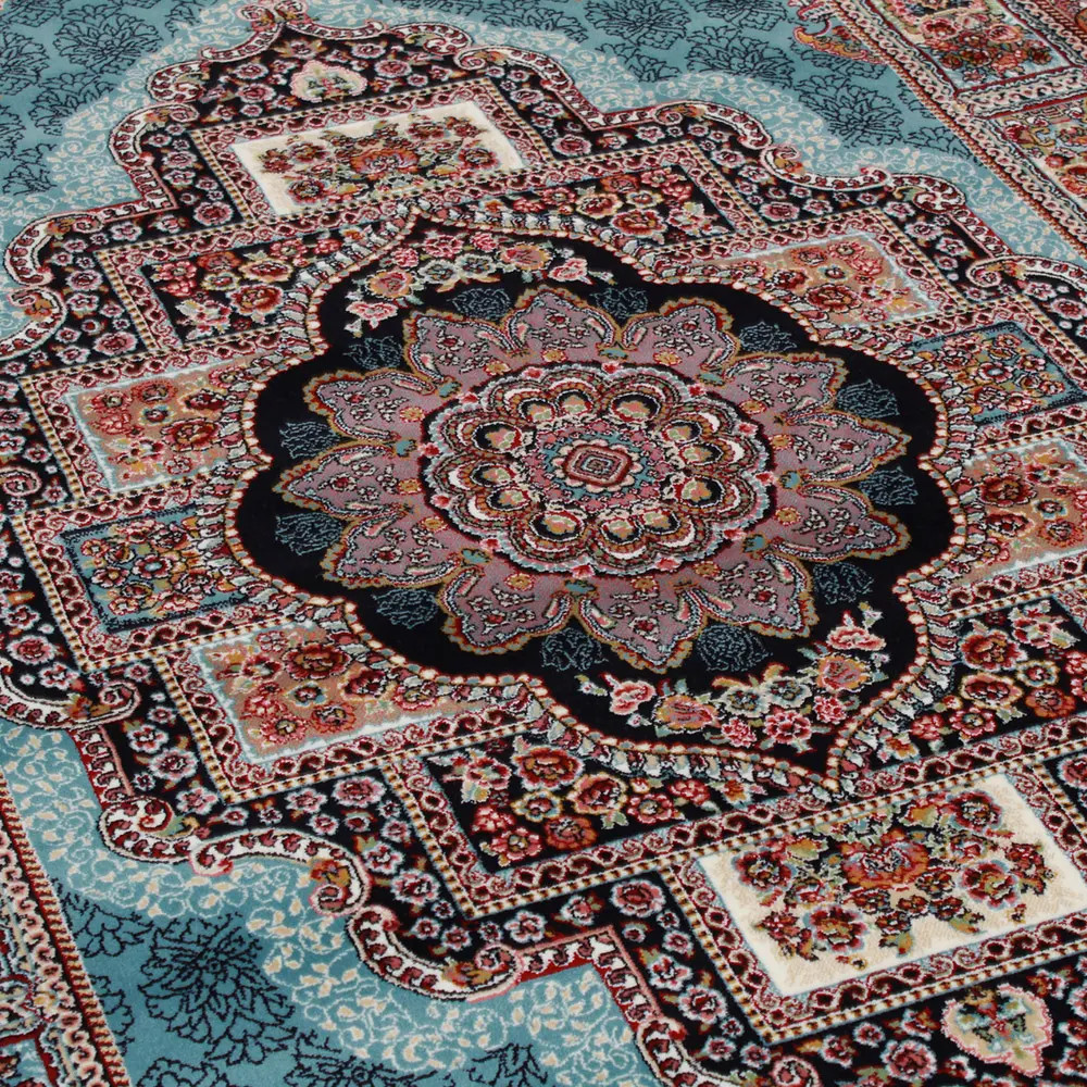 Gépi perzsa szőnyeg türkiz 160x230 luxus nappali szőnyeg akrilból  -872421B160230