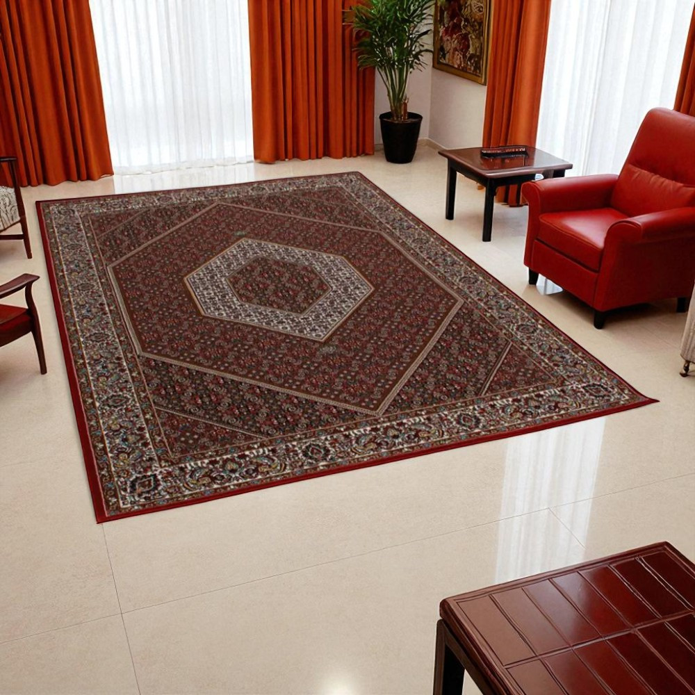 Gépi perzsa szőnyeg bordó BIDJAR 160x230 minőségi nappali szőnyeg akrilból