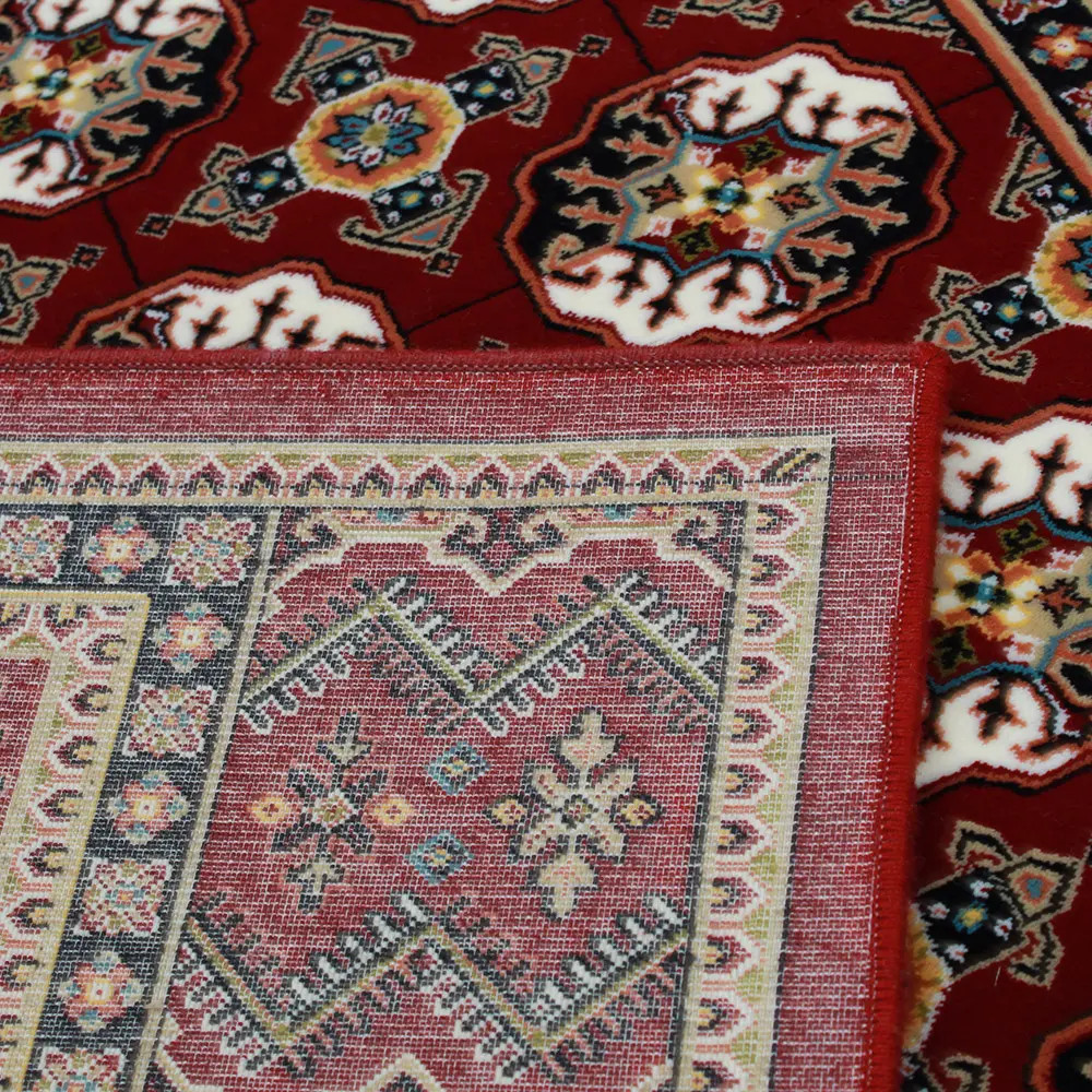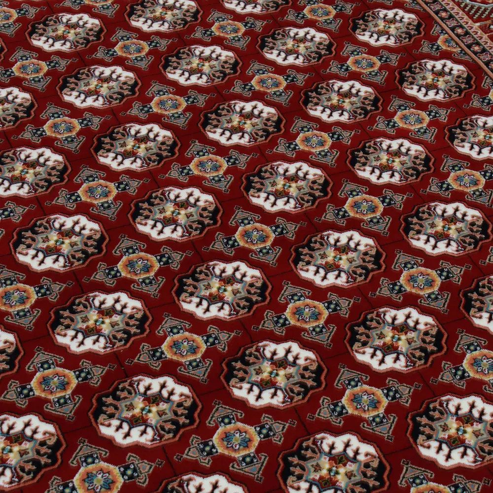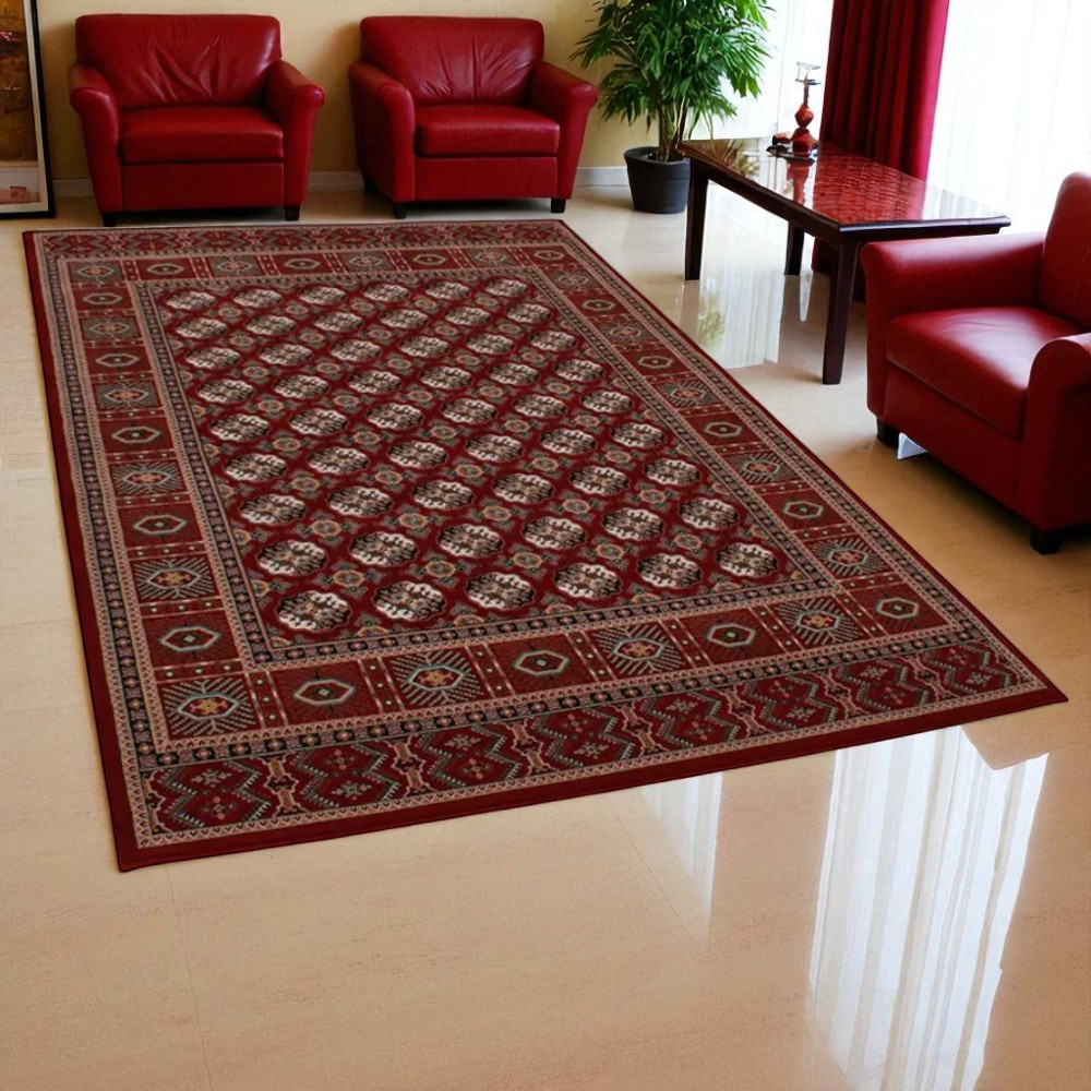 A Gépi perzsa szőnyeg bordó Bokhara lenyűgöző megjelenésével és kifinomult stílusával azonnal otthona központi elemévé válhat. Ez a luxus nappali szőnyeg akrilból készült, amely egyesíti a hagyományos kézi gépi perzsa szőnyegek esztétikáját a modern gépi szövés precizitásával. A gazdag bordó szín és a részletes mintázat eleganciát és melegséget sugároz, míg az akril anyag tartósságot és könnyű tisztíthatóságot biztosít. A szőnyeg prémium minőségű akrilból készült, így hosszú élettartamot és allergénmentes használatot garantál, tökéletes választás bármelyik helyiségbe.