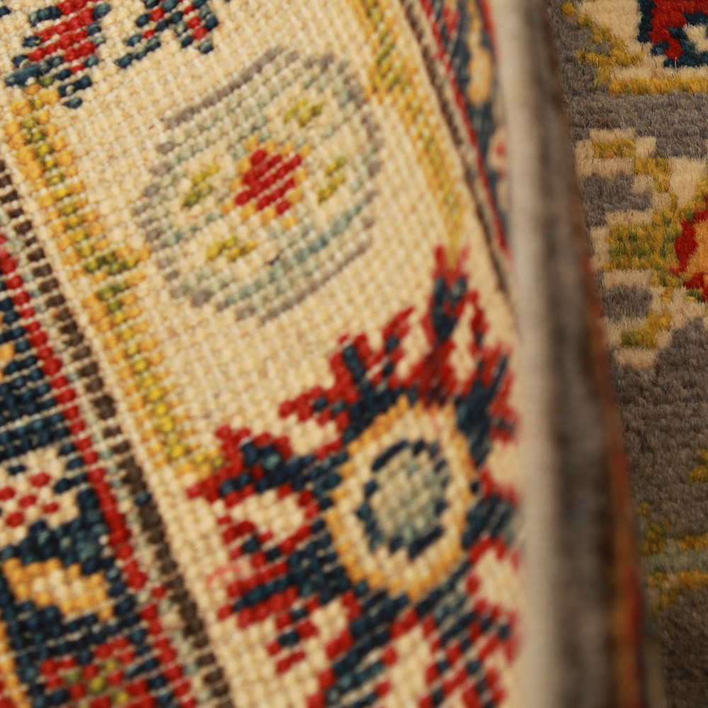 A Kazak szőnyeg főleg a meleg, mégis világos színvilágával vált népszerűvé. Lakberendezőink legtöbbször a klasszikusan berendezett lakásokhoz szokták javasolni. Mintáit az orosz geometriai minták ihlették. Csak az elnevezése Kazak szőnyeg, készítése Afganisztánban történik. A felhasznált gyapjú természetes növényi festékkel színezték. A kazak keleti szőnyeget erőteljes színvilág jellemzi. Előnye, hogy a világos színeinek köszönhetően, nem sötétíti be a szobája hangulatát. Nappali szőnyegként kiválóan passzol a kanapék vagy dohányzóasztal színeihez. Hálószoba szőnyegként az ágy két oldalára is szokták teríteni. Ilyenkor elegendő, ha a szőnyegek színei passzolnak egymáshoz. A szőnyegkészítés minden mozzanata 100%-ig kézzel történik. A legforgalmasabb nappaliba is teríthető, a tartósságának köszönhetően. A Kazak keleti szőnyeg csomózási technikáját Gheordes-nek nevezik, amely dupla csomózást jelent. A szőnyeg elkészülte után négyszer mossák, ezt követően hagyják száradni a napon. Nem tartalmaz allergén anyagot.