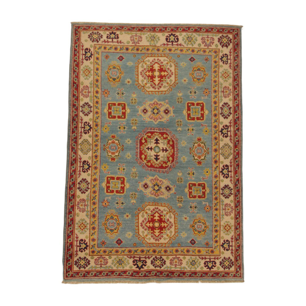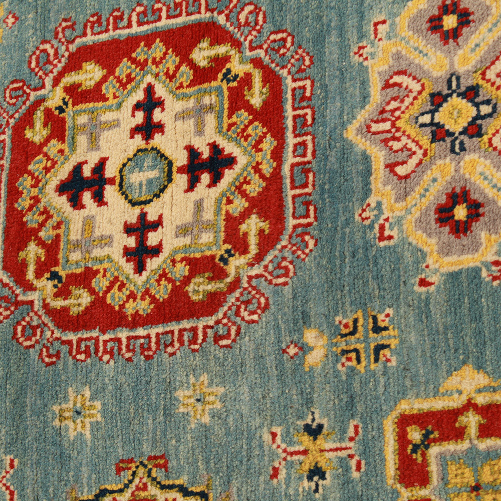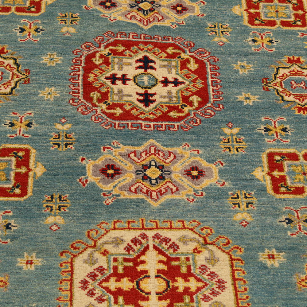 A Kazak szőnyeg főleg a meleg, mégis világos színvilágával vált népszerűvé. Lakberendezőink legtöbbször a klasszikusan berendezett lakásokhoz szokták javasolni. Mintáit az orosz geometriai minták ihlették. Csak az elnevezése Kazak szőnyeg, készítése Afganisztánban történik. A felhasznált gyapjú természetes növényi festékkel színezték. A kazak keleti szőnyeget erőteljes színvilág jellemzi. Előnye, hogy a világos színeinek köszönhetően, nem sötétíti be a szobája hangulatát. Nappali szőnyegként kiválóan passzol a kanapék vagy dohányzóasztal színeihez. Hálószoba szőnyegként az ágy két oldalára is szokták teríteni. Ilyenkor elegendő, ha a szőnyegek színei passzolnak egymáshoz. A szőnyegkészítés minden mozzanata 100%-ig kézzel történik. A legforgalmasabb nappaliba is teríthető, a tartósságának köszönhetően. A Kazak keleti szőnyeg csomózási technikáját Gheordes-nek nevezik, amely dupla csomózást jelent. A szőnyeg elkészülte után négyszer mossák, ezt követően hagyják száradni a napon. Nem tartalmaz allergén anyagot.