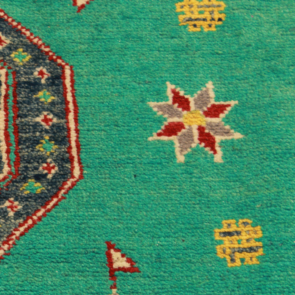 A Kazak szőnyeg főleg a meleg, mégis világos színvilágával vált népszerűvé. Lakberendezőink legtöbbször a klasszikusan berendezett lakásokhoz szokták javasolni. Mintáit az orosz geometriai minták ihlették. Csak az elnevezése Kazak szőnyeg, készítése Afganisztánban történik. A felhasznált gyapjú természetes növényi festékkel színezték. A kazak keleti szőnyeget erőteljes színvilág jellemzi. Előnye, hogy a világos színeinek köszönhetően, nem sötétíti be a szobája hangulatát. Nappali szőnyegként kiválóan passzol a kanapék vagy dohányzóasztal színeihez. Hálószoba szőnyegként az ágy két oldalára is szokták teríteni. Ilyenkor elegendő, ha a szőnyegek színei passzolnak egymáshoz. A szőnyegkészítés minden mozzanata 100%-ig kézzel történik. A legforgalmasabb nappaliba is teríthető, a tartósságának köszönhetően. A Kazak keleti szőnyeg csomózási technikáját Gheordes-nek nevezik, amely dupla csomózást jelent. A szőnyeg elkészülte után négyszer mossák, ezt követően hagyják száradni a napon. Nem tartalmaz allergén anyagot.