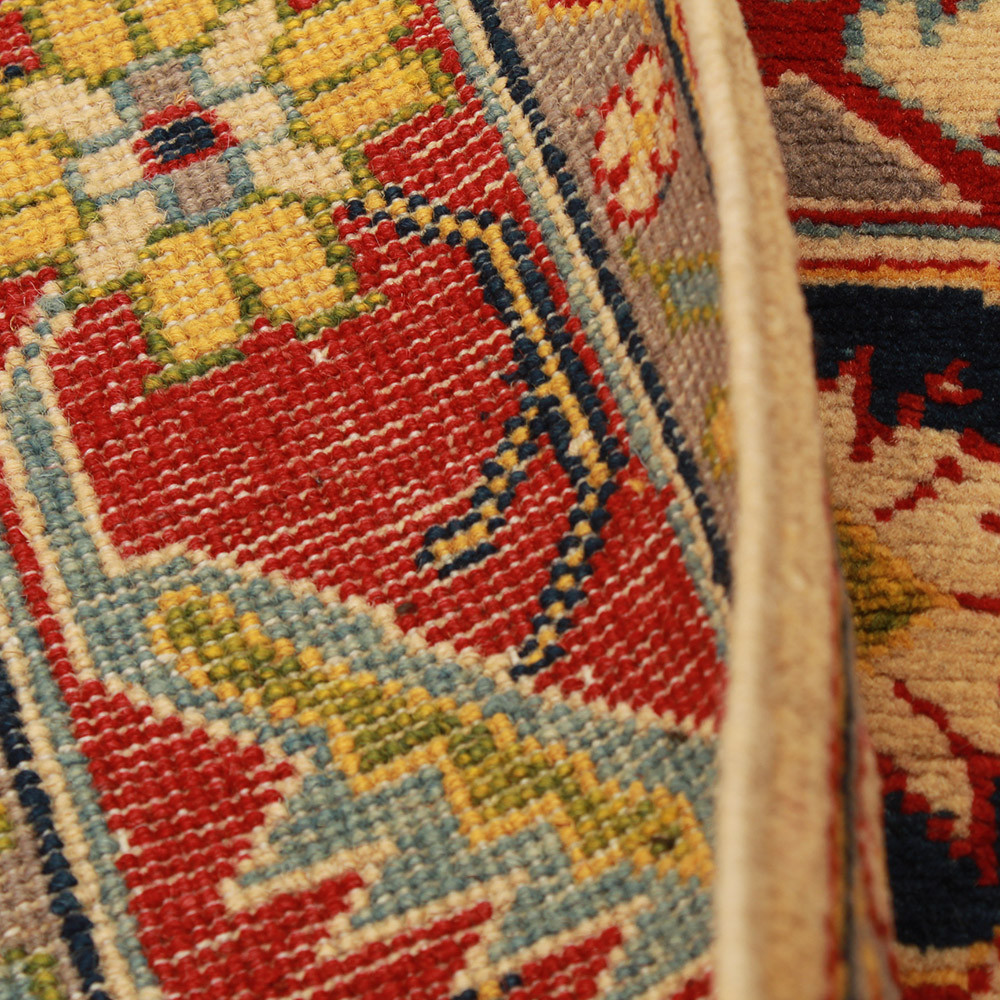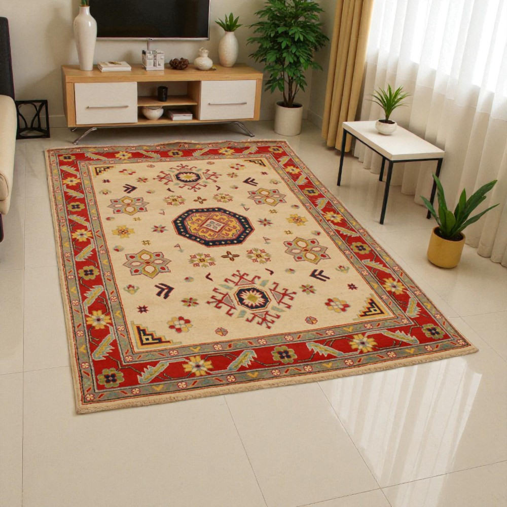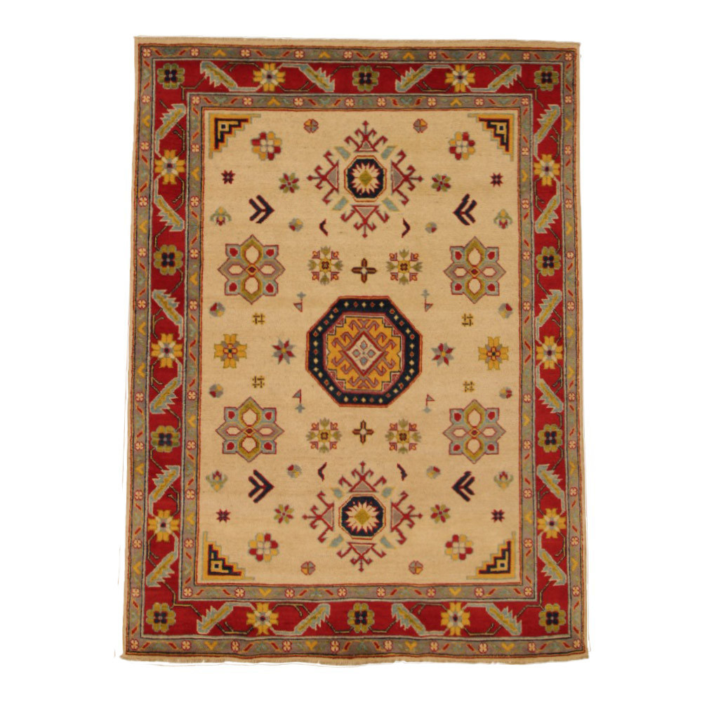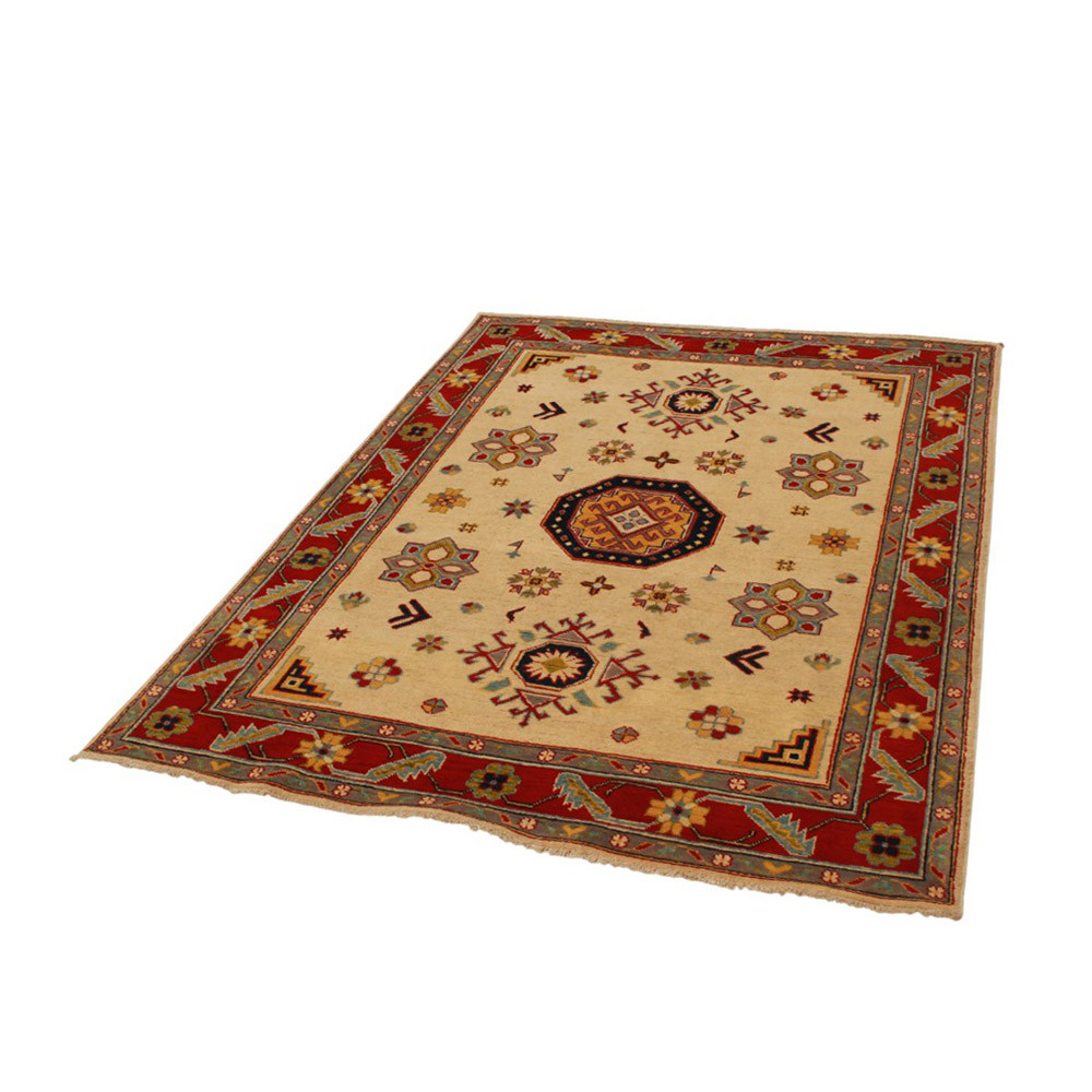A Kazak szőnyeg főleg a meleg, mégis világos színvilágával vált népszerűvé. Lakberendezőink legtöbbször a klasszikusan berendezett lakásokhoz szokták javasolni. Mintáit az orosz geometriai minták ihlették. Csak az elnevezése Kazak szőnyeg, készítése Afganisztánban történik. A felhasznált gyapjú természetes növényi festékkel színezték. A kazak keleti szőnyeget erőteljes színvilág jellemzi. Előnye, hogy a világos színeinek köszönhetően, nem sötétíti be a szobája hangulatát. Nappali szőnyegként kiválóan passzol a kanapék vagy dohányzóasztal színeihez. Hálószoba szőnyegként az ágy két oldalára is szokták teríteni. Ilyenkor elegendő, ha a szőnyegek színei passzolnak egymáshoz. A szőnyegkészítés minden mozzanata 100%-ig kézzel történik. A legforgalmasabb nappaliba is teríthető, a tartósságának köszönhetően. A Kazak keleti szőnyeg csomózási technikáját Gheordes-nek nevezik, amely dupla csomózást jelent. A szőnyeg elkészülte után négyszer mossák, ezt követően hagyják száradni a napon. Nem tartalmaz allergén anyagot.
