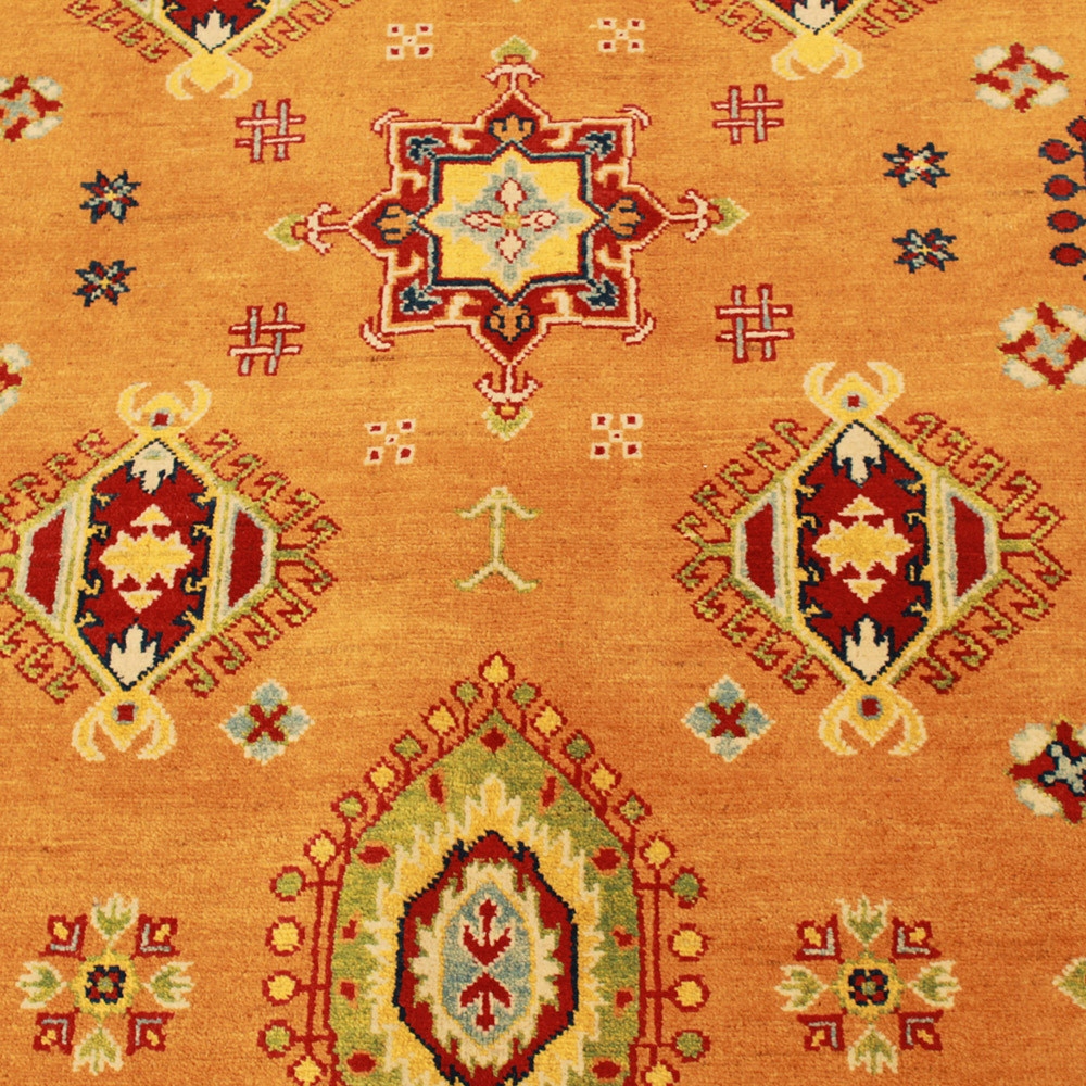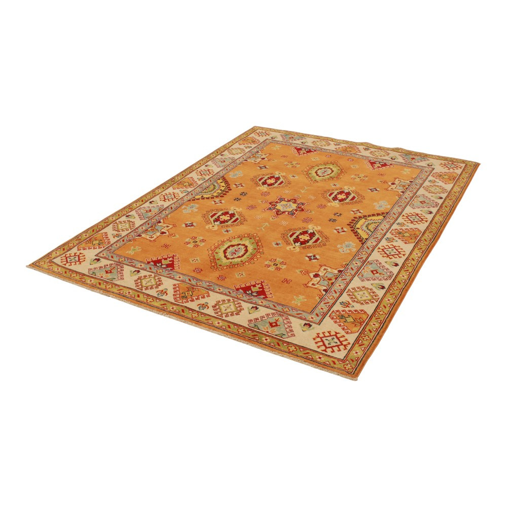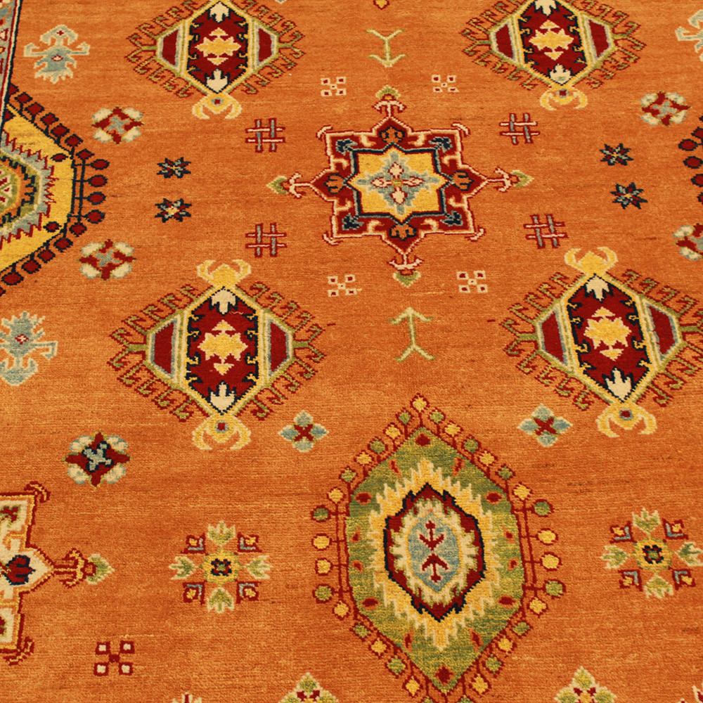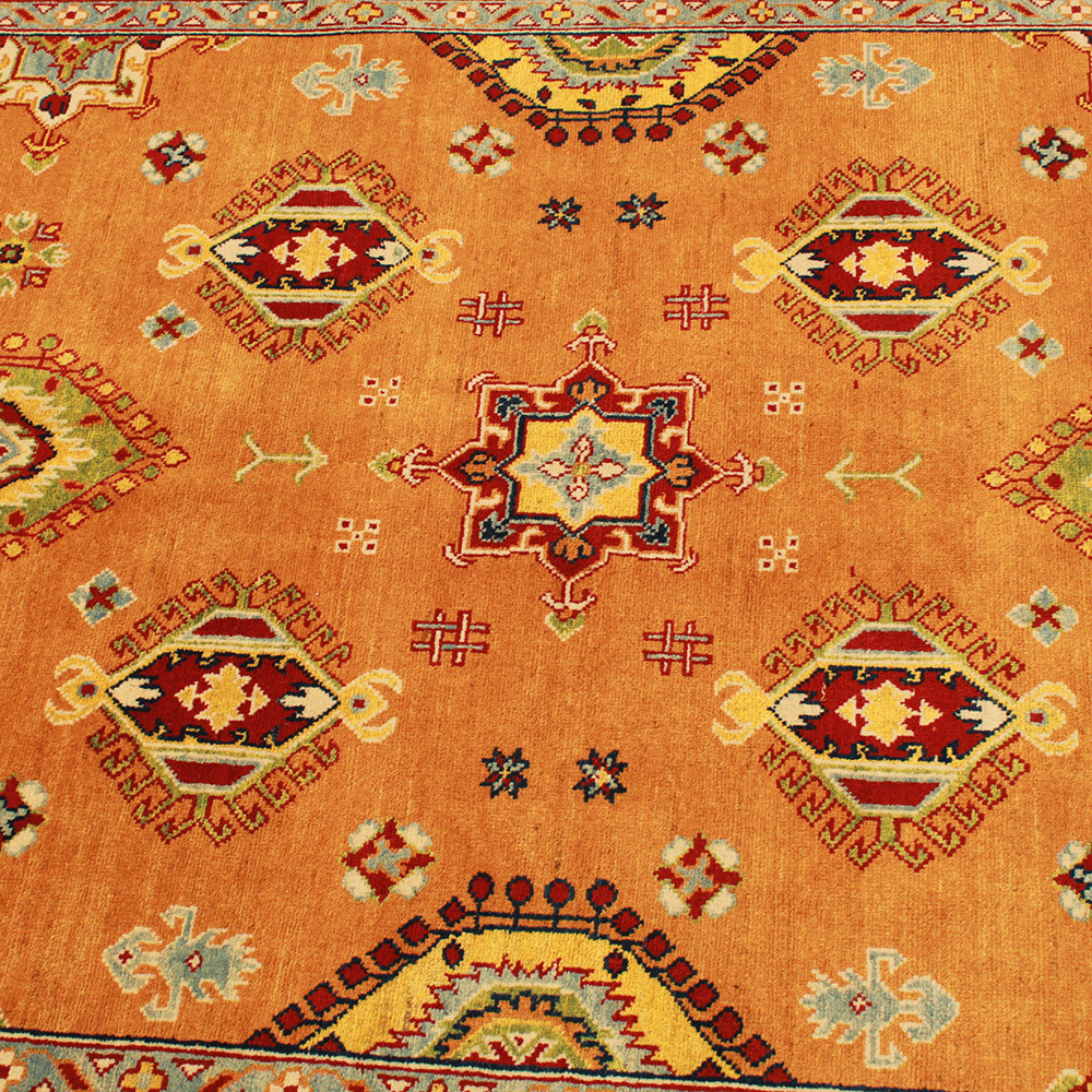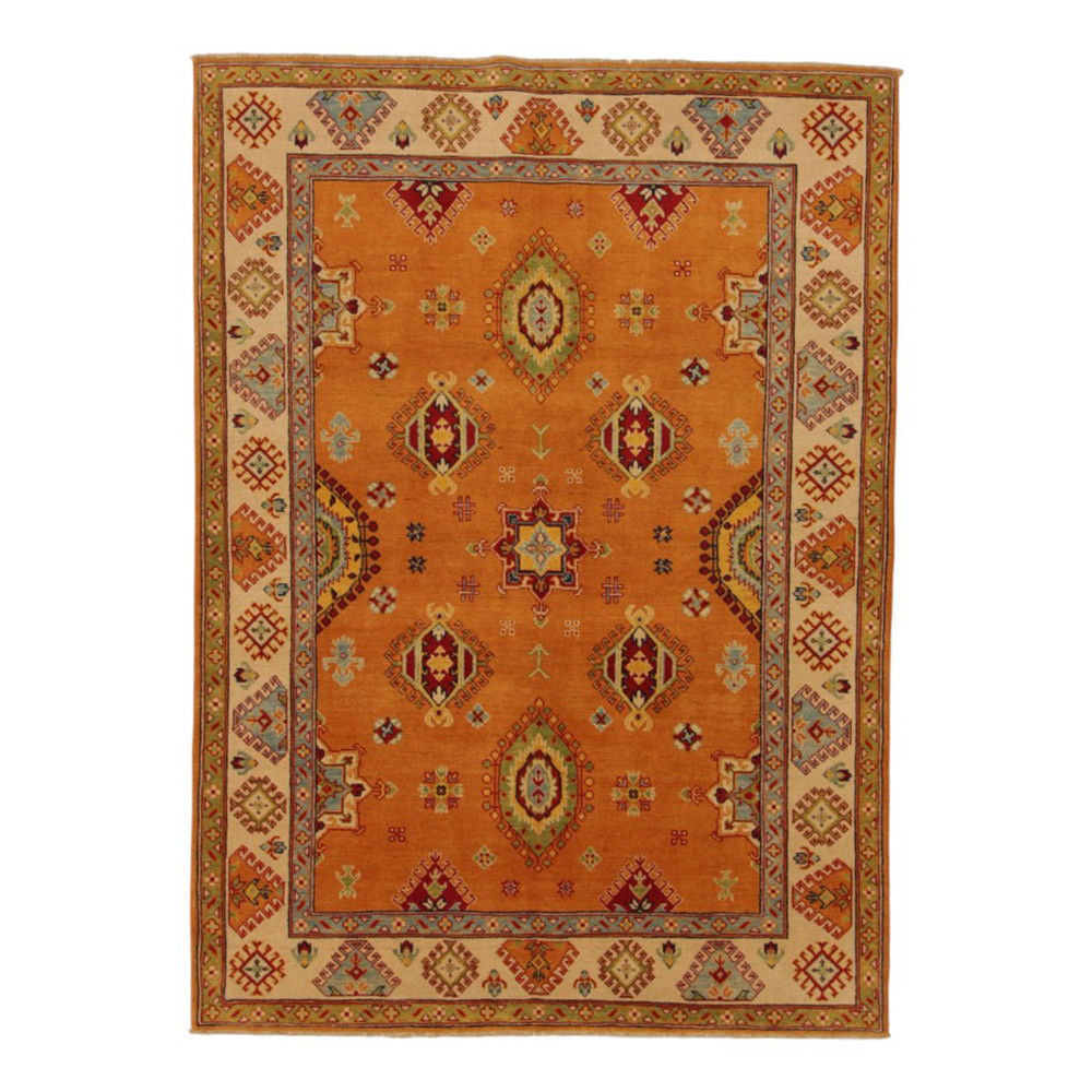 A Kazak szőnyeg főleg a meleg, mégis világos színvilágával vált népszerűvé. Lakberendezőink legtöbbször a klasszikusan berendezett lakásokhoz szokták javasolni. Mintáit az orosz geometriai minták ihlették. Csak az elnevezése Kazak szőnyeg, készítése Afganisztánban történik. A felhasznált gyapjú természetes növényi festékkel színezték. A kazak keleti szőnyeget erőteljes színvilág jellemzi. Előnye, hogy a világos színeinek köszönhetően, nem sötétíti be a szobája hangulatát. Nappali szőnyegként kiválóan passzol a kanapék vagy dohányzóasztal színeihez. Hálószoba szőnyegként az ágy két oldalára is szokták teríteni. Ilyenkor elegendő, ha a szőnyegek színei passzolnak egymáshoz. A szőnyegkészítés minden mozzanata 100%-ig kézzel történik. A legforgalmasabb nappaliba is teríthető, a tartósságának köszönhetően. A Kazak keleti szőnyeg csomózási technikáját Gheordes-nek nevezik, amely dupla csomózást jelent. A szőnyeg elkészülte után négyszer mossák, ezt követően hagyják száradni a napon. Nem tartalmaz allergén anyagot.