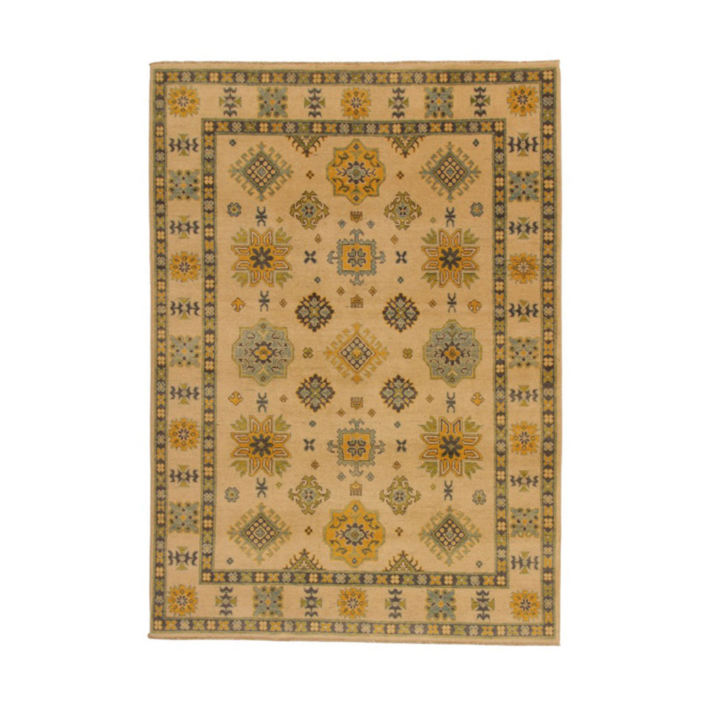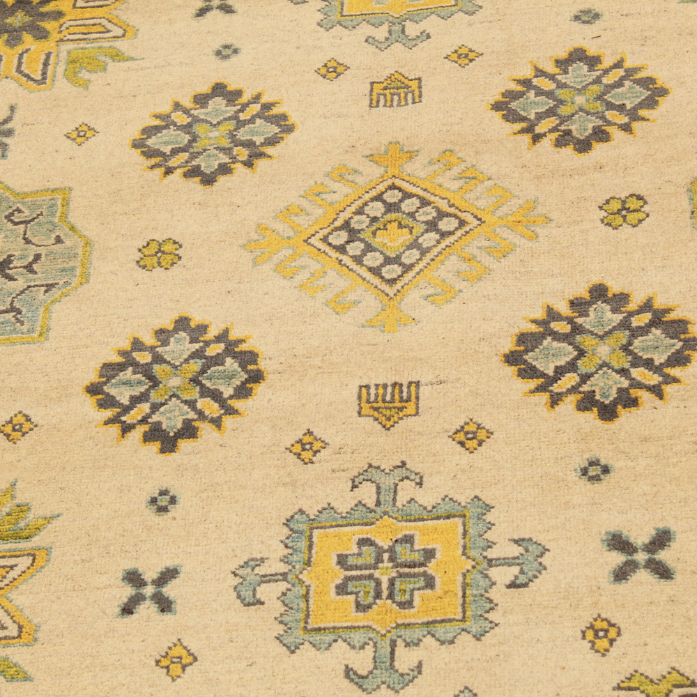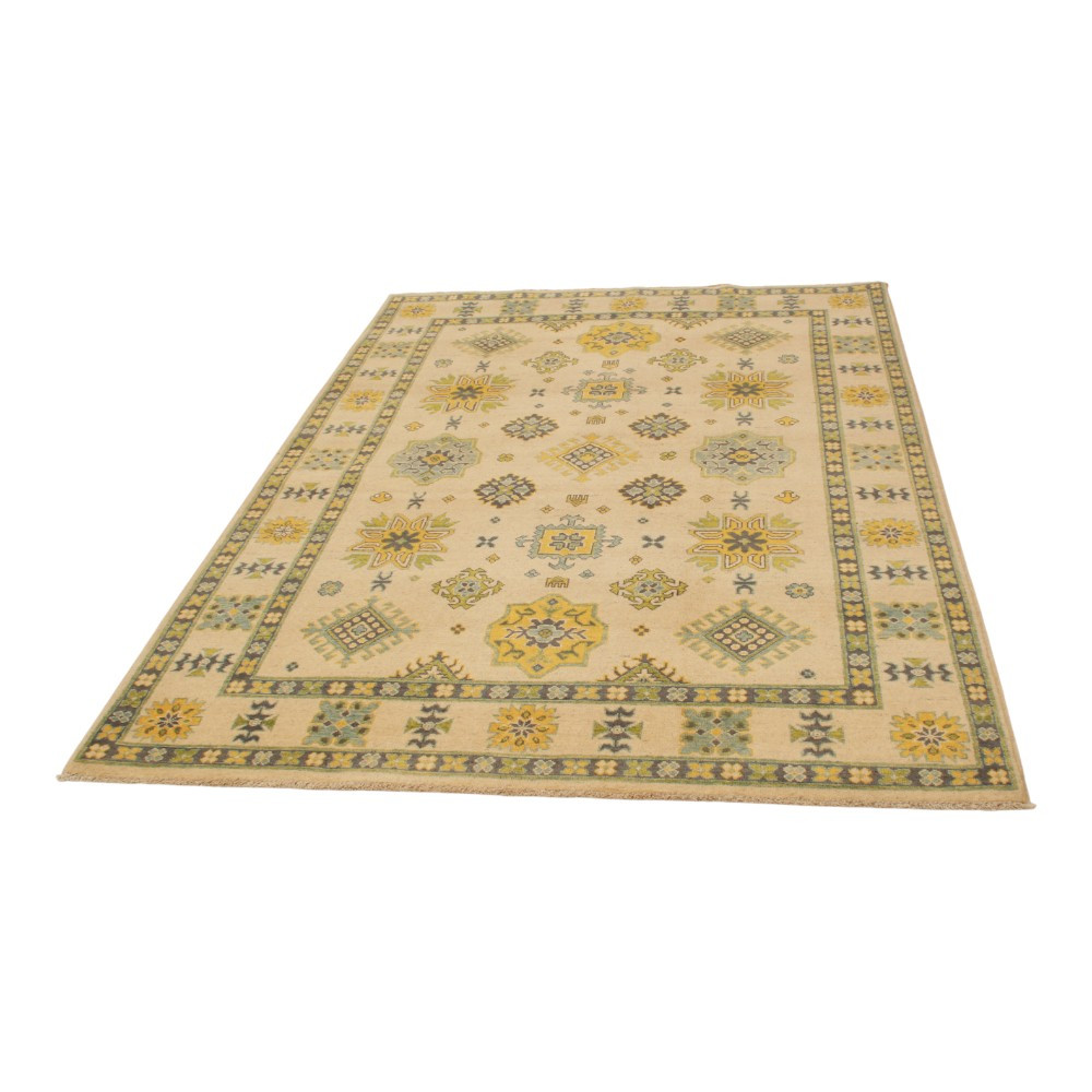 A Kazak szőnyeg főleg a meleg, mégis világos színvilágával vált népszerűvé. Lakberendezőink legtöbbször a klasszikusan berendezett lakásokhoz szokták javasolni. Mintáit az orosz geometriai minták ihlették. Csak az elnevezése Kazak szőnyeg, készítése Afganisztánban történik. A felhasznált gyapjú természetes növényi festékkel színezték. A kazak keleti szőnyeget erőteljes színvilág jellemzi. Előnye, hogy a világos színeinek köszönhetően, nem sötétíti be a szobája hangulatát. Nappali szőnyegként kiválóan passzol a kanapék vagy dohányzóasztal színeihez. Hálószoba szőnyegként az ágy két oldalára is szokták teríteni. Ilyenkor elegendő, ha a szőnyegek színei passzolnak egymáshoz. A szőnyegkészítés minden mozzanata 100%-ig kézzel történik. A legforgalmasabb nappaliba is teríthető, a tartósságának köszönhetően. A Kazak keleti szőnyeg csomózási technikáját Gheordes-nek nevezik, amely dupla csomózást jelent. A szőnyeg elkészülte után négyszer mossák, ezt követően hagyják száradni a napon. Nem tartalmaz allergén anyagot.