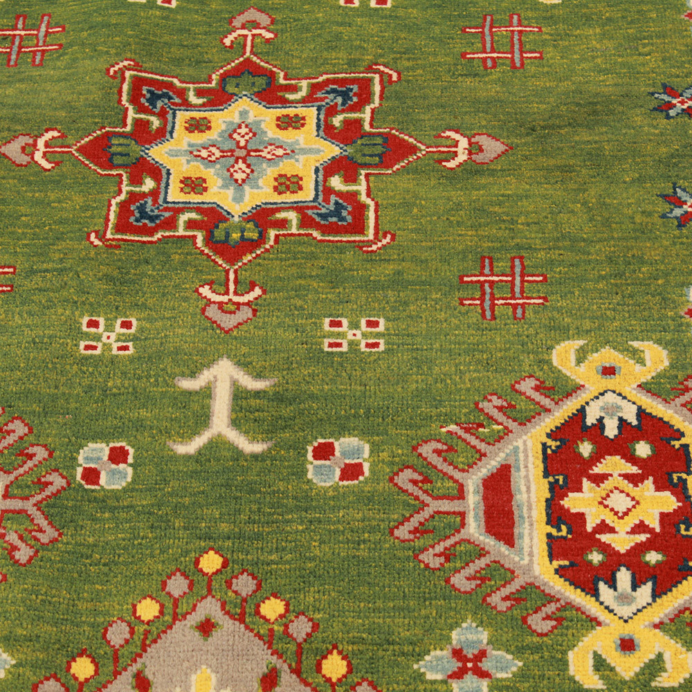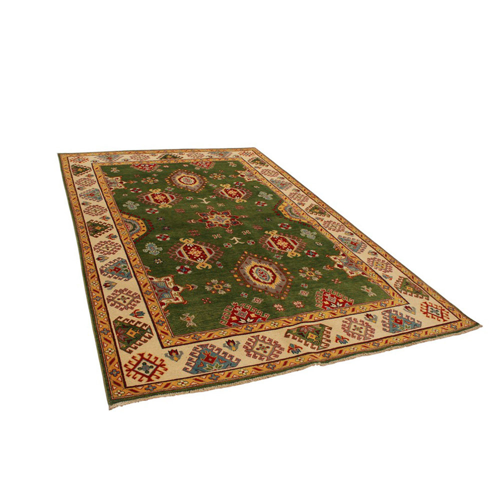 A Kazak szőnyeg főleg a meleg, mégis világos színvilágával vált népszerűvé. Lakberendezőink legtöbbször a klasszikusan berendezett lakásokhoz szokták javasolni. Mintáit az orosz geometriai minták ihlették. Csak az elnevezése Kazak szőnyeg, készítése Afganisztánban történik. A felhasznált gyapjú természetes növényi festékkel színezték. A kazak keleti szőnyeget erőteljes színvilág jellemzi. Előnye, hogy a világos színeinek köszönhetően, nem sötétíti be a szobája hangulatát. Nappali szőnyegként kiválóan passzol a kanapék vagy dohányzóasztal színeihez. Hálószoba szőnyegként az ágy két oldalára is szokták teríteni. Ilyenkor elegendő, ha a szőnyegek színei passzolnak egymáshoz. A szőnyegkészítés minden mozzanata 100%-ig kézzel történik. A legforgalmasabb nappaliba is teríthető, a tartósságának köszönhetően. A Kazak keleti szőnyeg csomózási technikáját Gheordes-nek nevezik, amely dupla csomózást jelent. A szőnyeg elkészülte után négyszer mossák, ezt követően hagyják száradni a napon. Nem tartalmaz allergén anyagot.