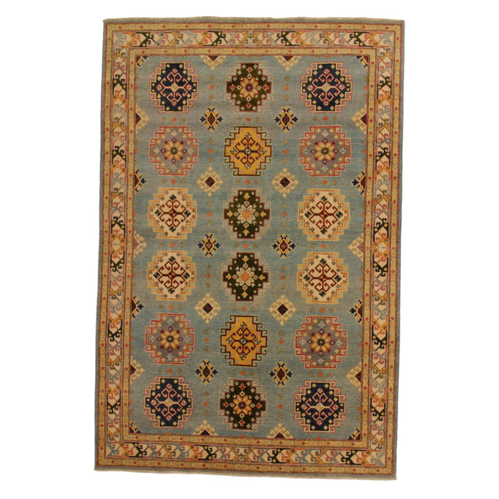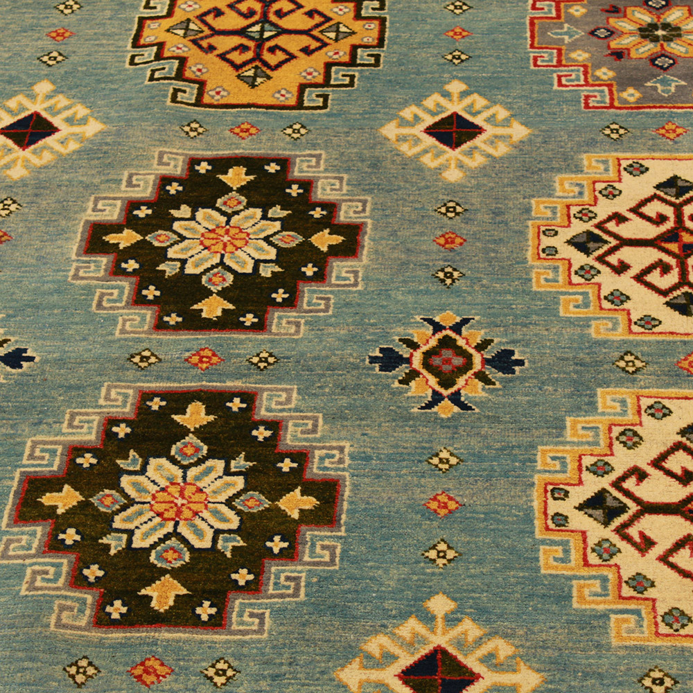 A Kazak szőnyeg főleg a meleg, mégis világos színvilágával vált népszerűvé. Lakberendezőink legtöbbször a klasszikusan berendezett lakásokhoz szokták javasolni. Mintáit az orosz geometriai minták ihlették. Csak az elnevezése Kazak szőnyeg, készítése Afganisztánban történik. A felhasznált gyapjú természetes növényi festékkel színezték. A kazak keleti szőnyeget erőteljes színvilág jellemzi. Előnye, hogy a világos színeinek köszönhetően, nem sötétíti be a szobája hangulatát. Nappali szőnyegként kiválóan passzol a kanapék vagy dohányzóasztal színeihez. Hálószoba szőnyegként az ágy két oldalára is szokták teríteni. Ilyenkor elegendő, ha a szőnyegek színei passzolnak egymáshoz. A szőnyegkészítés minden mozzanata 100%-ig kézzel történik. A legforgalmasabb nappaliba is teríthető, a tartósságának köszönhetően. A Kazak keleti szőnyeg csomózási technikáját Gheordes-nek nevezik, amely dupla csomózást jelent. A szőnyeg elkészülte után négyszer mossák, ezt követően hagyják száradni a napon. Nem tartalmaz allergén anyagot.