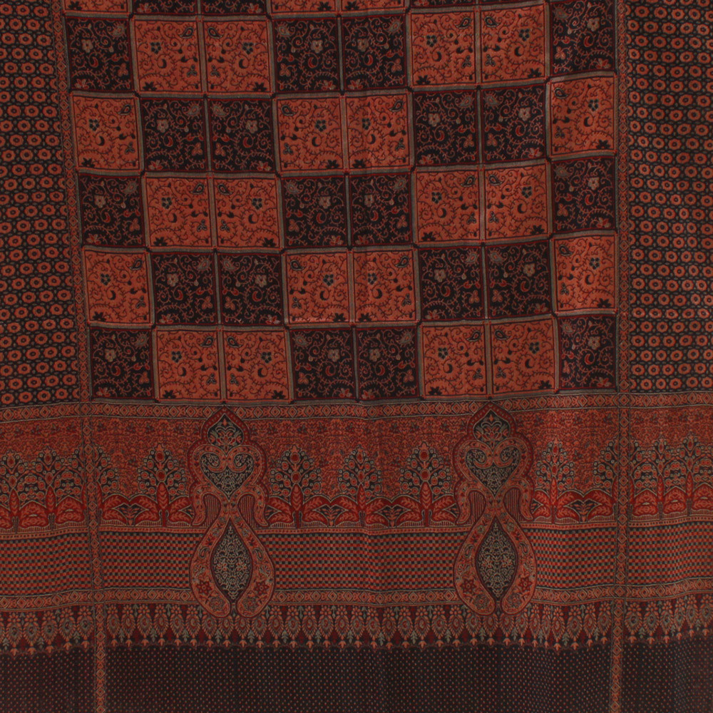 Keleti mintás sál mályva-barna 215x105 pamut vállkendő