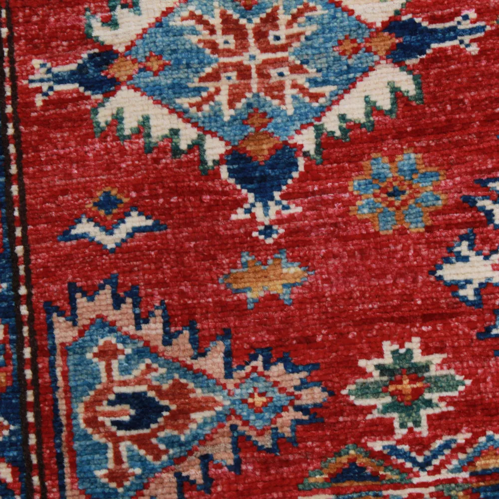 A Kazak szőnyeg főleg a meleg, mégis világos színvilágával vált népszerűvé. Lakberendezőink legtöbbször a klasszikusan berendezett lakásokhoz szokták javasolni. Mintáit az orosz geometriai minták ihlették. Csak az elnevezése Kazak szőnyeg, készítése Afganisztánban történik. A felhasznált gyapjú természetes növényi festékkel színezték. A kazak keleti szőnyeget erőteljes színvilág jellemzi. Előnye, hogy a világos színeinek köszönhetően, nem sötétíti be a szobája hangulatát. Nappali szőnyegként kiválóan passzol a kanapék vagy dohányzóasztal színeihez. Hálószoba szőnyegként az ágy két oldalára is szokták teríteni. Ilyenkor elegendő, ha a szőnyegek színei passzolnak egymáshoz. A szőnyegkészítés minden mozzanata 100%-ig kézzel történik. A legforgalmasabb nappaliba is teríthető, a tartósságának köszönhetően. A Kazak keleti szőnyeg csomózási technikáját Gheordes-nek nevezik, amely dupla csomózást jelent. A szőnyeg elkészülte után négyszer mossák, ezt követően hagyják száradni a napon. Nem tartalmaz allergén anyagot.