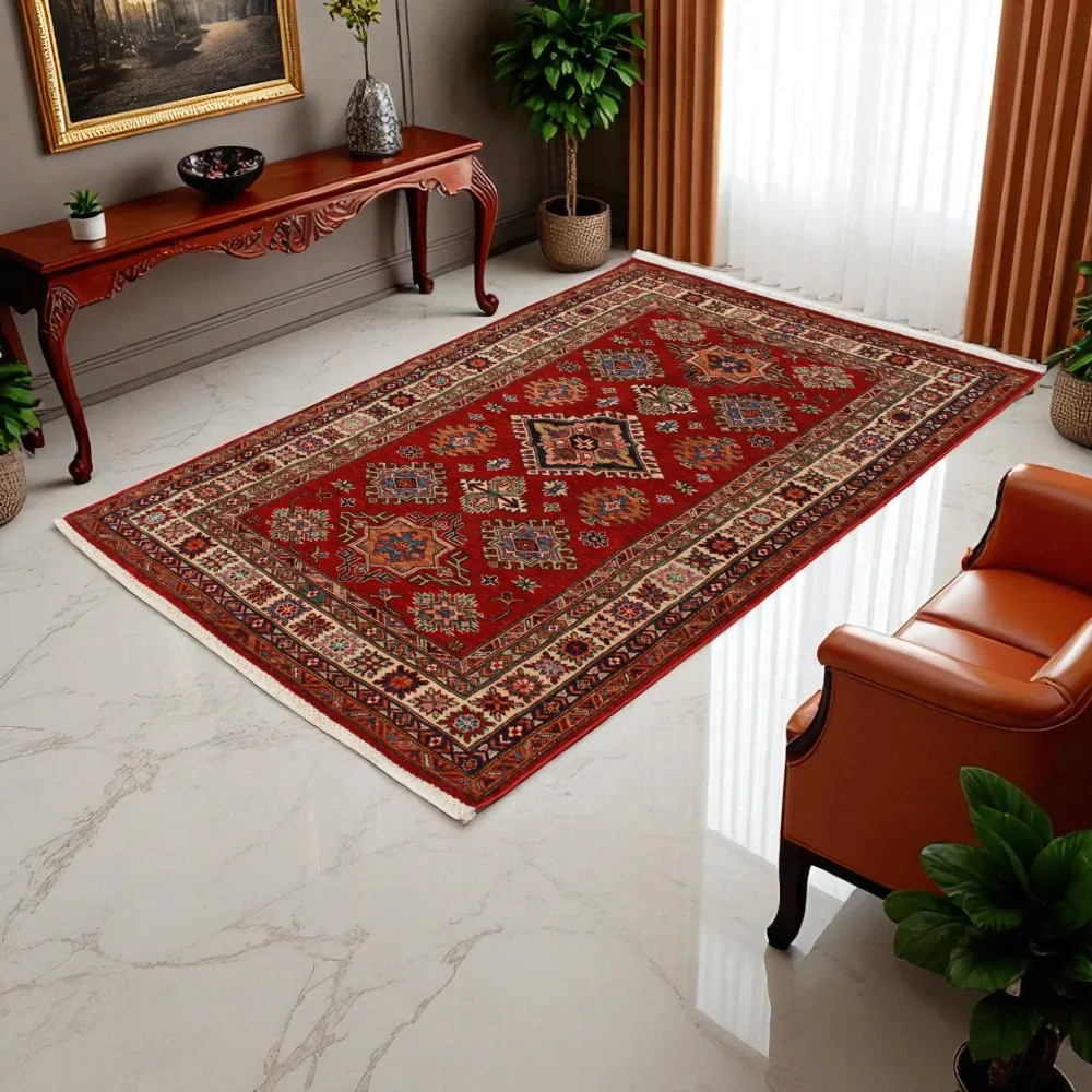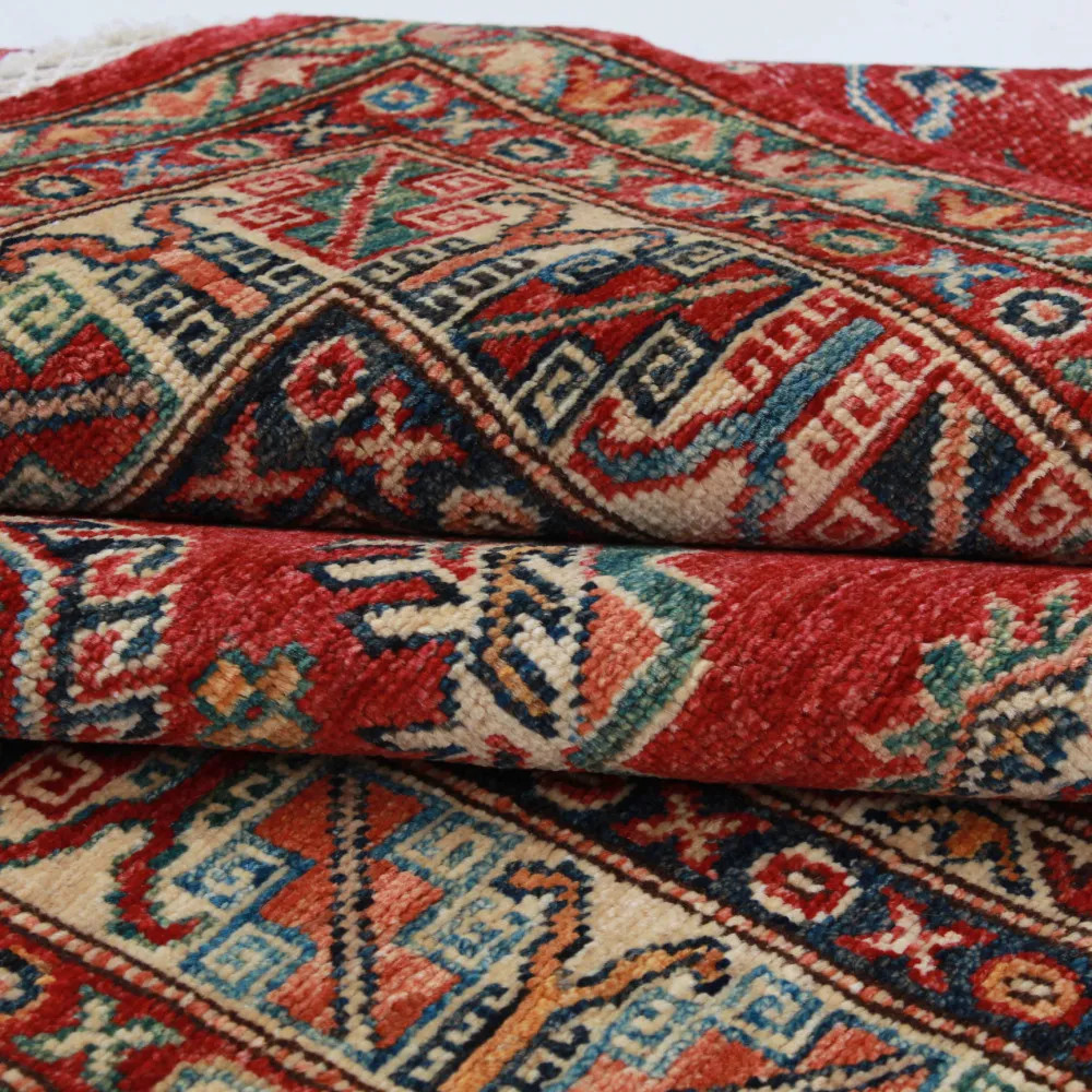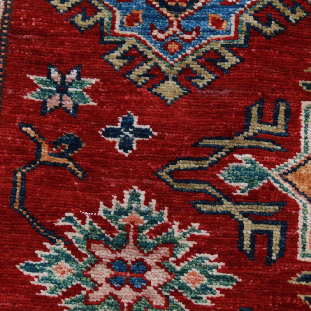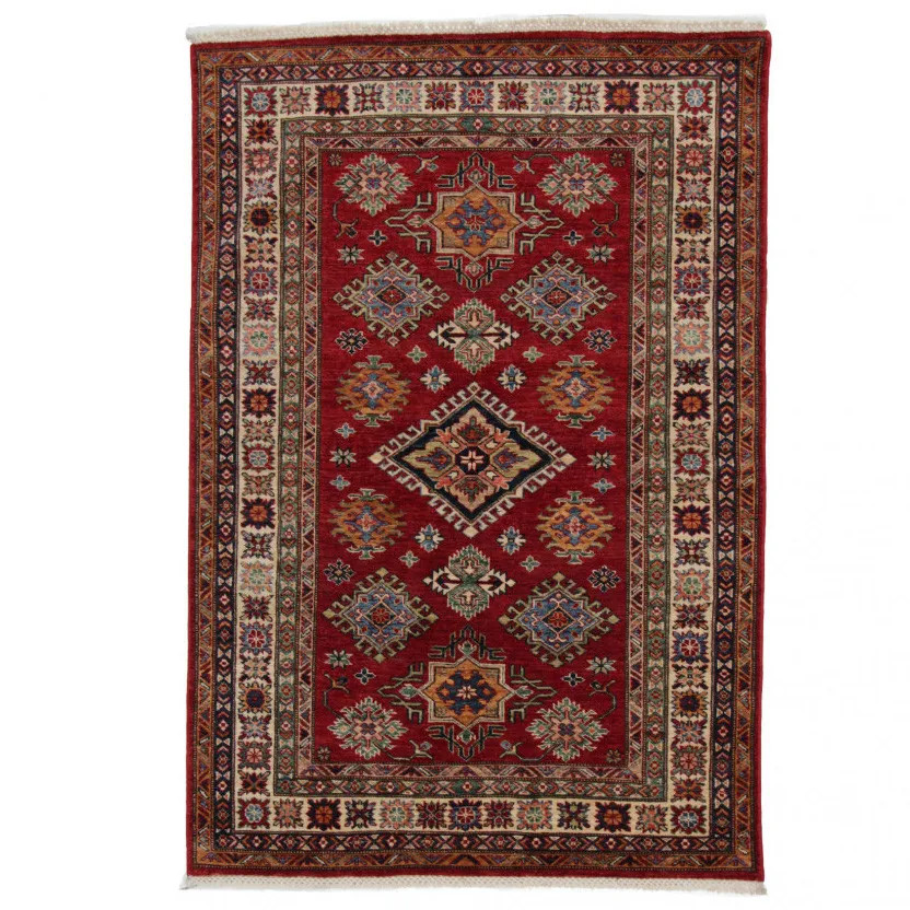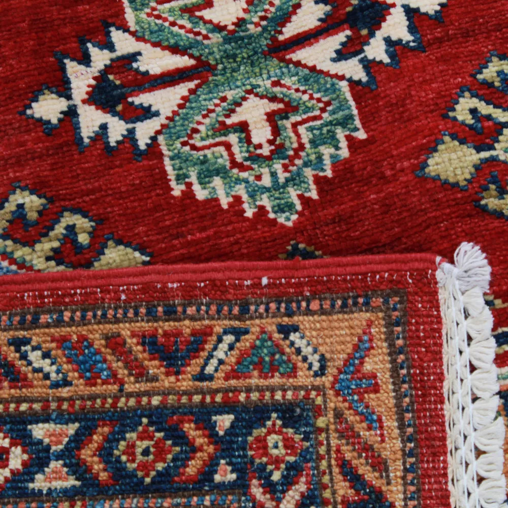 A Kazak szőnyeg főleg a meleg, mégis világos színvilágával vált népszerűvé. Lakberendezőink legtöbbször a klasszikusan berendezett lakásokhoz szokták javasolni. Mintáit az orosz geometriai minták ihlették. Csak az elnevezése Kazak szőnyeg, készítése Afganisztánban történik. A felhasznált gyapjú természetes növényi festékkel színezték. A kazak keleti szőnyeget erőteljes színvilág jellemzi. Előnye, hogy a világos színeinek köszönhetően, nem sötétíti be a szobája hangulatát. Nappali szőnyegként kiválóan passzol a kanapék vagy dohányzóasztal színeihez. Hálószoba szőnyegként az ágy két oldalára is szokták teríteni. Ilyenkor elegendő, ha a szőnyegek színei passzolnak egymáshoz. A szőnyegkészítés minden mozzanata 100%-ig kézzel történik. A legforgalmasabb nappaliba is teríthető, a tartósságának köszönhetően. A Kazak keleti szőnyeg csomózási technikáját Gheordes-nek nevezik, amely dupla csomózást jelent. A szőnyeg elkészülte után négyszer mossák, ezt követően hagyják száradni a napon. Nem tartalmaz allergén anyagot.