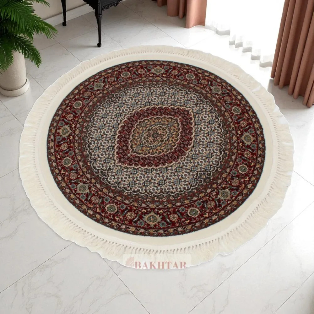 Kerek szőnyeg bézs Mahi 100x100 prémium gépi perzsa szőnyeg akrilból