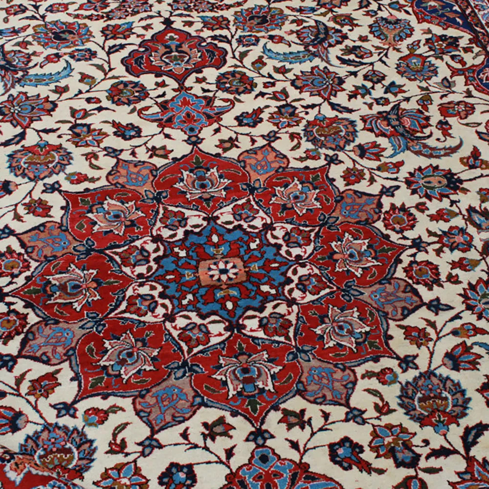 Az Isfahan szőnyegek mintái, motívumai és színei rendkívül összetettek és gondosan megkomponáltak, tükrözve a perzsa művészet kifinomultságát és részletgazdagságát. A szőnyegek központi eleme általában egy domináns medál minta, amelyet virágmotívumok és geometriai alakzatok vesznek körül. Az Isfahan szőnyegek híresek szimmetrikus elrendezéseikről és a hagyományos perzsa „Shah Abbas” mintáról, amely a városban készülő szőnyegek egyik jellegzetes vonása. A minták és színek harmóniája adja az Isfahan szőnyegek különleges megjelenését, amelyek egyedülálló eleganciát sugároznak, és bármely környezetbe kifinomultságot kölcsönöznek. A kézművesek generációkon átívelő tapasztalata tükröződik ezekben a szőnyegekben, amelyek valódi műalkotásokként jelennek meg.