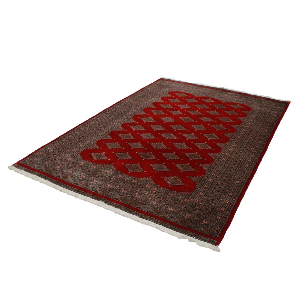 Pakisztáni szőnyeg Punjab és Sindh tartományban készül. Ez a keleti szőnyeg, mely hosszú évszázadokra visszanyúló hagyományokat tükröz. Mesterek kézügyességét és művészi érzékét dicséri. A Pakisztáni szőnyeg világszerte híres a minőségéről, és Pakisztán gazdag kulturális örökségét hordozza magán. Ennek a gyapjú szőnyegnek a mintázata és készítési technikája eredetileg a Türkmén népcsoporttól származik, akik a híres Bukhara város régi szőnyeg piacán forgalmazták azokat. Az egyik legismertebb minta (Bukhara) nevét innen kapta, és azóta is meghatározó jellegzetessége ezeknek a gyönyörű keleti szőnyegeknek. A Pakisztáni szőnyegek anyaga új-zélandi Merinoi gyapjú, melyek kiemelkedő minőséget és tartósságot biztosítanak. Sűrű csomózásuknak köszönhetően hosszú élettartamúak, és ellenállnak a mindennapi használatból adódó kopásnak. Ezt a lenyűgöző szőnyeget ma Pakisztán egyik legszebb gyapjú szőnyegének tartják. A szőnyeg készítése és nyírása után négyszer mossák, majd gondosan szárítják, hogy megtartsák élénk színeiket és színtartásukat. A Geometrikus mintáikkal és elegáns színeikkel egyedi hangulatot kölcsönöznek otthonának, legyen szó nappali szőnyegről, mely fokozza a helyiség eleganciáját, vagy hálószoba szőnyegről, mely kényelmet és puhaságot ad a lépéseinknek. Emellett ideális választás folyosókra a pakisztáni futószőnyeg. Ha Ön egy különleges, keleti szőnyeget szeretne, mely minőségi anyagból készült és művészi kézügyességről tanúskodik, akkor a Pakisztáni gyapjú szőnyegek tökéletes választásnak bizonyulnak. A kifinomult minták és az élénk színek harmonikus kombinációja varázslatos hangulatot teremt a szoba minden részében. A Pakisztáni szőnyeg nem csupán esztétikai értéket képvisel, hanem rendkívül praktikus is. A sűrű csomózású felülete tartós és ellenálló, ami lehetővé teszi, hogy hosszú éveken át szép állapotban maradjon. Továbbá, a gyapjú anyag természetes tulajdonságai révén képesek szigetelni a padlót, így hőtartóképességük is kiemelkedő. A Pakisztáni szőnyeg sokféle méretben és formában elérhető, így mindenki megtalálhatja a legmegfelelőbbet az otthonához.
