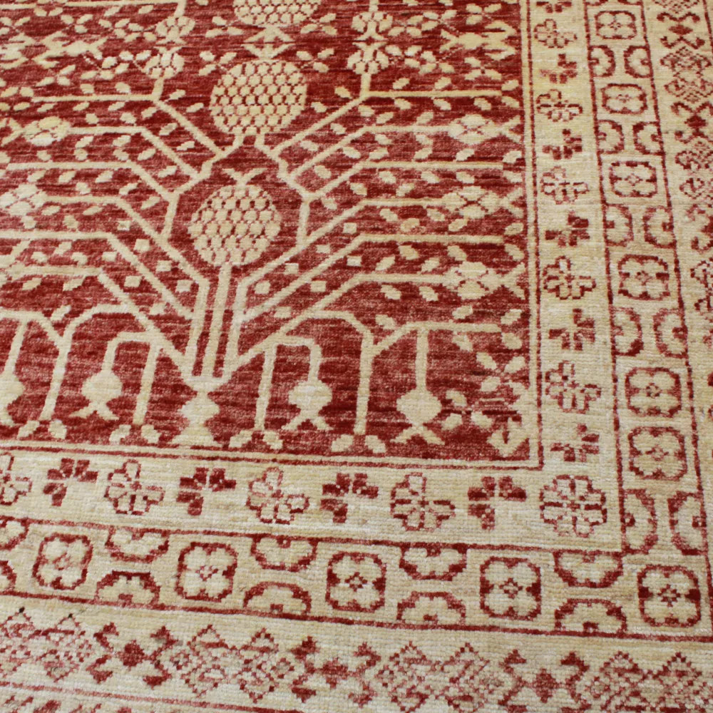 Az Aikat modern perzsa szőnyeg egy kortárs tervezésű szőnyeg, amely az aktuális modern kor és a hagyományos keleti szőnyeg stílusának tökéletes ötvözetét képviseli. Bár viszonylag fiatal tervezésű, mégis számos előnnyel rendelkezik, amelyek ideálissá teszik a minimalista és klasszikus belső terek számára. Az Aikat kézi csomózású modern szőnyeg Afganisztánban készül, és egyedülálló hangulatot kölcsönöz otthonának a modern mintázatok és színek révén. Az elkészült szőnyeget alaposan átmossák és a forró napsütésben szárítják, ami hozzájárul az elképesztően tartós színükhöz. Ez a modern perzsa szőnyeg egy valódi mestermű, amely 100%-ban kézzel készült. Az Aikat szőnyegek színezőanyagát pedig természetből kinyert festékek adják. Az Aikat modern perzsa szőnyeg csomózása gyapjú és a felvetőfonala pedig pamut. Az Aikat kézi csomózású modern szőnyeg készítése során a Gheordes csomózási technikát alkalmazzák, amely dupla csomózást jelent. Az Aikat szőnyeg tervezése és készítése hosszú és fáradságos folyamat, amely során a szőnyeg csomózó mesterek hatalmas tapasztalatát és szakértelmét kamatoztatják. Az Aikat modern perzsa szőnyeg bármelyik helyiségben kellemes atmoszférát teremt, legyen az nappali vagy hálószoba. Ha pedig folyosójára szeretne futószőnyeget, akkor is megtalálhatja a megfelelőt a CarpetDepo szőnyegáruház kínálatában. Aikat modern perzsa szőnyeg nem csak szemet gyönyörködtető, hanem praktikus és stílusos választás is otthona díszítéséhez. Ez a szőnyeg ideális választás a meleg érzet megteremtése szempontjából is. A gyapjú természetes tulajdonságai révén kiválóan szigetel a hideg ellen, így kellemes hangulatot teremt minimalista terekben is, ahol a gyönyörű csempéknek is nagy szerepe van. Ez a gyapjú szőnyeg nem csupán otthonokban, hanem különböző közösségi terekben is kiválóan megállják a helyüket. Így például luxus irodákban, szállodákban is elegáns és stílusos megjelenést kölcsönöznek. Ha igazán különleges és exkluzív atmoszférát szeretne teremteni a nappali vagy a hálószobájába, az Aikat modern perzsa szőnyeg a tökéletes választás. A szőnyeg vásárlása előtt érdemes megbizonyosodnia arról, hogy a mérete megfelel a szoba méretéhez. A modern keleti szőnyeg mintázata és színe pedig a helyszínen válik igazán nyilvánvalóvá, hogy harmonizál-e a kiválasztott helyiséggel. Ha azonban mégsem elégedett a választott szőnyeggel, semmi ok az aggodalomra, mert a CarpetDepo szőnyegáruház ingyenes visszaküldést biztosít Önnek.